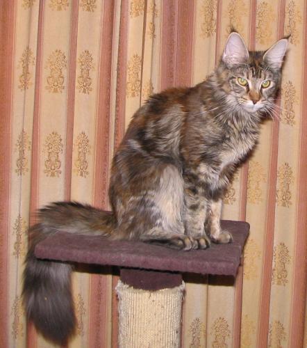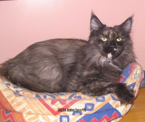 Zuzia, Zuzaczek, Zuzu – a female brought from Denmark in the times when breeders from abroad didn't want to sell any cats to this "strange" country Poland... sometimes it was easier if you had "connections", but I didn't have any. But I said "I can do it!" and in the April in 1994 I went to Denmark to buy a 5-month-old female cat. She was born on 24.11.1994 and is a THIRD Maine Coon in Poland! Her pedigree number is 004...