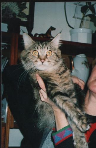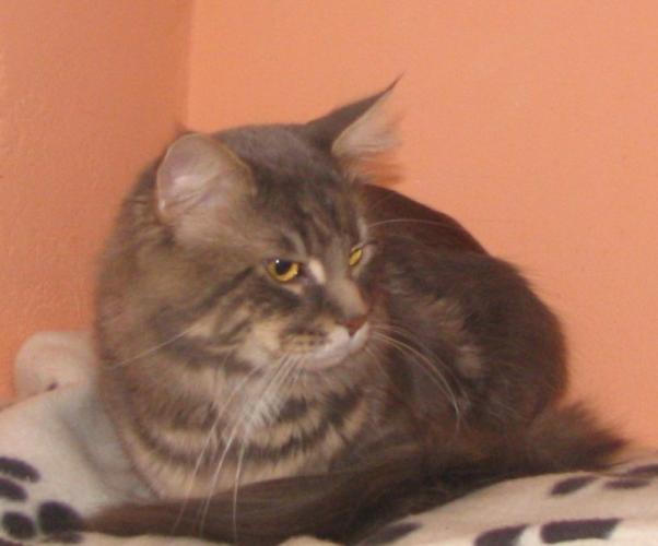 He is a delicate and senstive cat, not brought to shows beacause of this delicacy and stress... he is frightened by noise, loudness, all the fingers poked into the cage... normally he is calm and delicate, kind to kittens and females... he admires peace and quiet.