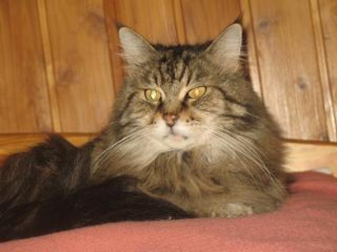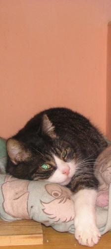 He came to my mother as a kitten orphan... he had a nice blue colour which he then "lost". First we fed him in the garden, but then we took him home for his safety (there is a street nearby). He was waiting for a good new home and he found it... by us. Now he lives in the country and leads a pieceful life. He spends almost half the year in the garden. I must say that he has the most beautiful eyes I've ever seen. Mruczek is with us for 12 years.