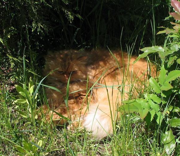 Her real name is TAFUNIA Alzo *PL – she was my first female cat, my lovely "anteater", neutered in the age of 8. She was a sweet ginger with nice fur, who loved staying in the garden, independent of the weather... Sometimes she argued with me and wanted to go outside when it was raining... SHe had a strong character... Before being neutered, she used to chase Mruczek, but after she forgot the quarrels and even let Mruczek be her friend... She always chose her own way – on sunny days she used to sleep under bushes. She was the oldest of all cats and on the 25th July she would have been 15 years old.................