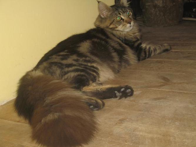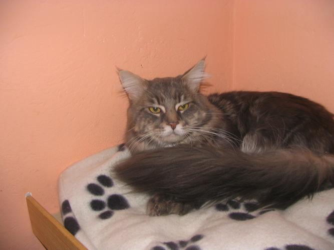 Pielęgnacja Maine Coon'a jest łatwa ponieważ jego jedwabista sierść rzadko ulega sfilcowaniu, kot nie wymaga niczego poza okresowym przeczesywaniem zazwyczaj z dodatkiem talku lub pudru dla dzieci :))