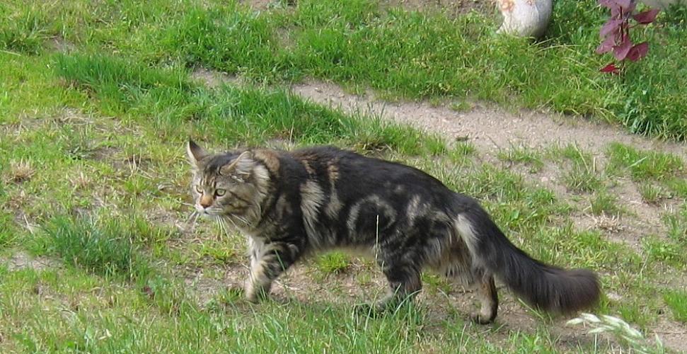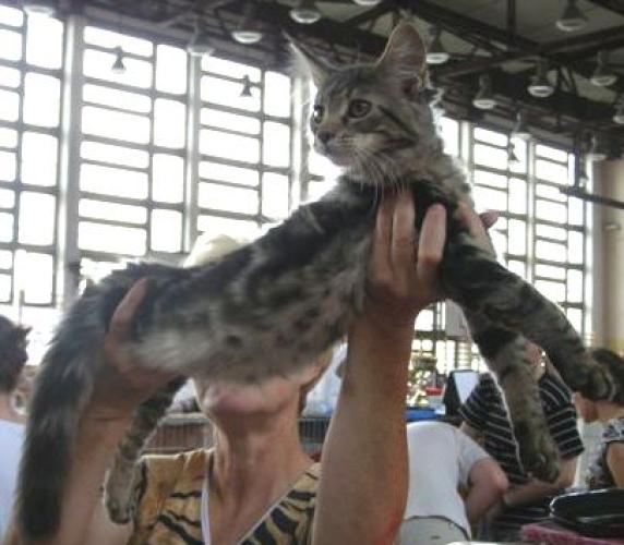 YAVA to kotka niezła w typie, bardzo długa, można powiedzieć, że to MCO w wydaniu "przegubowym", ma wysoko osadzone uszy z ładnymi pędzlami i niesamowite jesienne w kolorze ubranko oraz wspaniały charakter .Matka miotu " J "