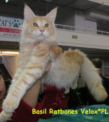 W przeciwieństwie do Floyda, Basil postawił na "kulturystykę" – jego ciało jest sprężyste i muskularne co podziwiają sędziowie i jest zaznaczone w kazdej ocenie wystawowej. Jedzenie nie jest dla niego najważniejsze ale zawsze jest "w okolicy" kiedy zbliża się pora karmienia. Do miski nie spieszy się, powiedziałabym, że podchodzi z godnością :))))))) Zawsze ustąpi kotce lub dziecku i poczeka obok. Uwielbia położyć się w ciepełku rozchodzącym się od kominka i pospać na baraniej skórce, a poza tym WIELKI przyjaciel Modraska..."
