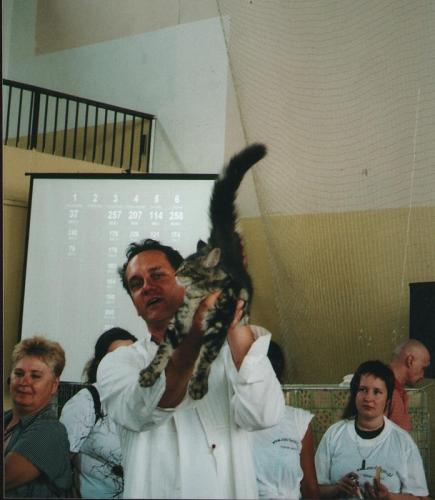 Floyd, z wyglądu kot, ale dusza wodniaka - szop pracz, wydra, ryba, Wodołaz, czy ja wiem co jeszcze... woda to jego żywioł, mogący doprowadzić człowieka do rozpaczy. Jedyna nadzieja, że wyrosnie z tego wychlapywania, pluskania łapką, leżenia w misce z wodą itd. Poza tym to kot normalny o ponadnormalnym apetycie, drapieżnik w 100%, osobiście zamordował biedną myszkę, która chciała spędzić zimę w domowych warunkach... ale nie spożył jej... Głodny potrafi "zapiszczeć" dom tak, że słychać go w całej okolicy. Nie gardzi niczym, wykrada ciastka, najbardziej gustuje w biszkoptach, interesuje go dosłownie wszystko... a ostatnio coraz bardziej kotki...