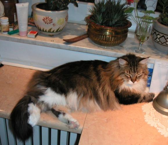 mieszka razem z p.Leonardem, ma kocią rodzinę:)
