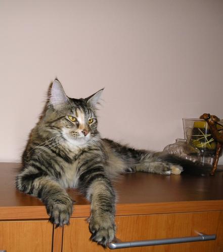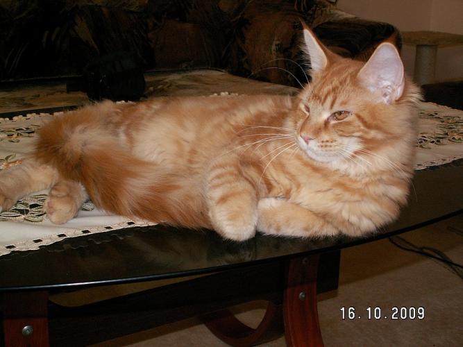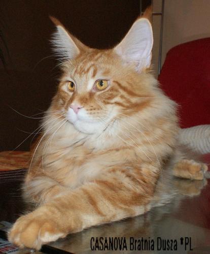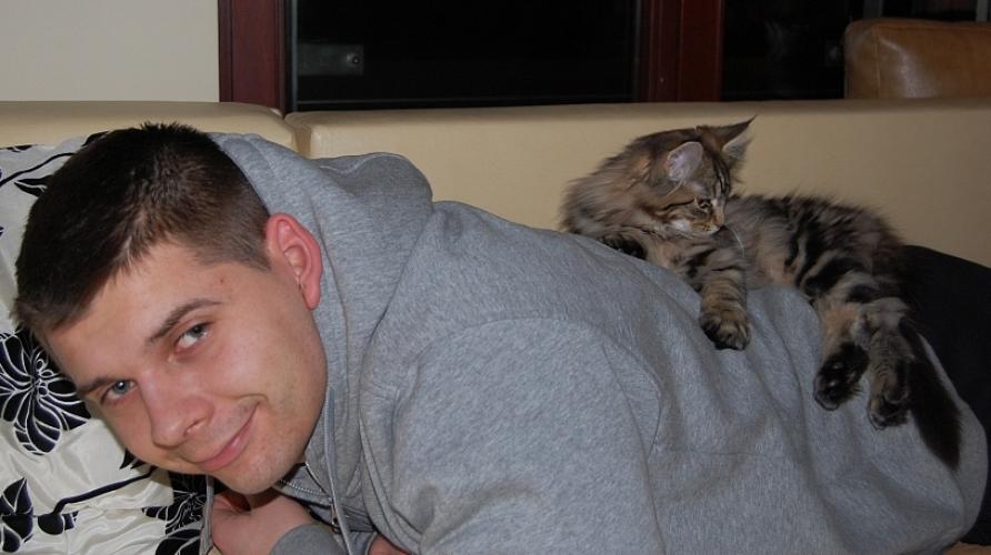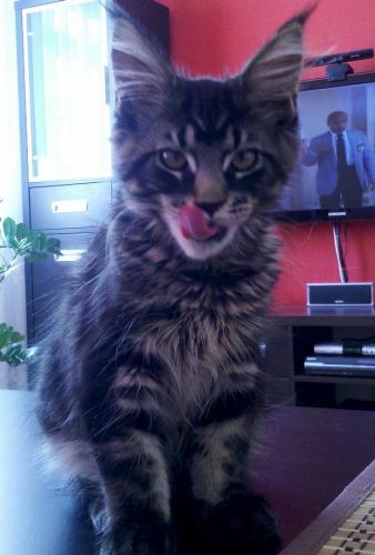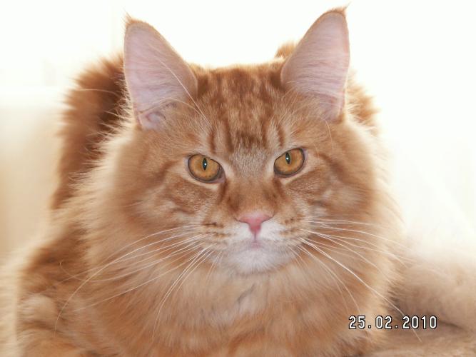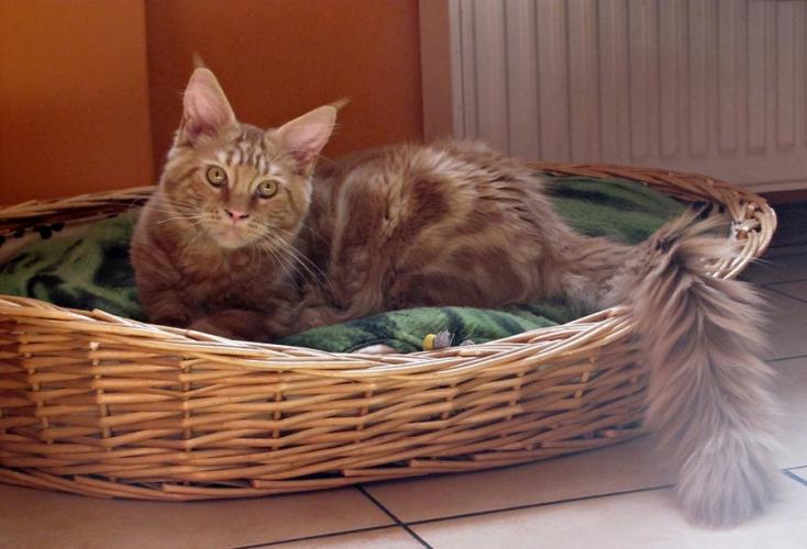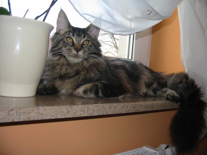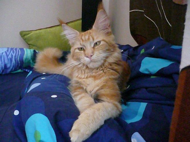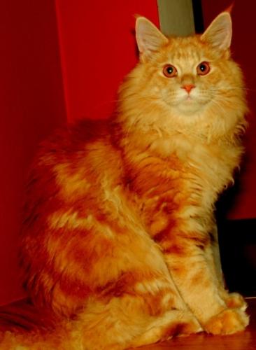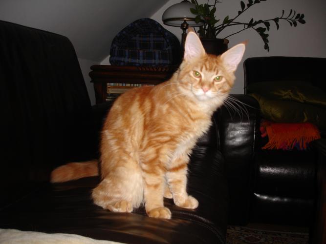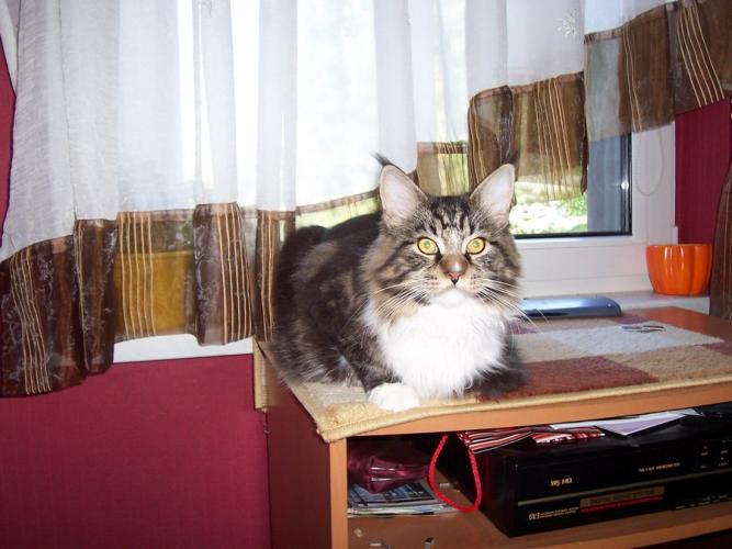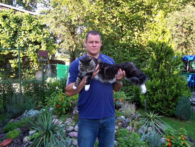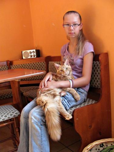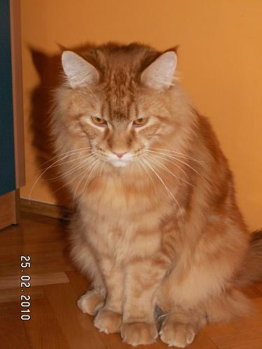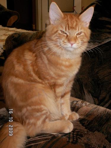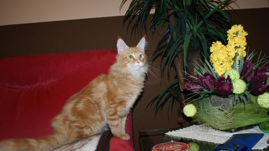 Mieszka w Starogardzie Gdańskim i spełnił marzenie Hani o rudym Maine Coonie, chociaż po domu przechadzają się piękne i utytułowane koty rasy syberyjskiej. Ponieważ posiada niepowtarzalny wdzięk i temperament, ożywił całe psio-kocie towarzystwo :))