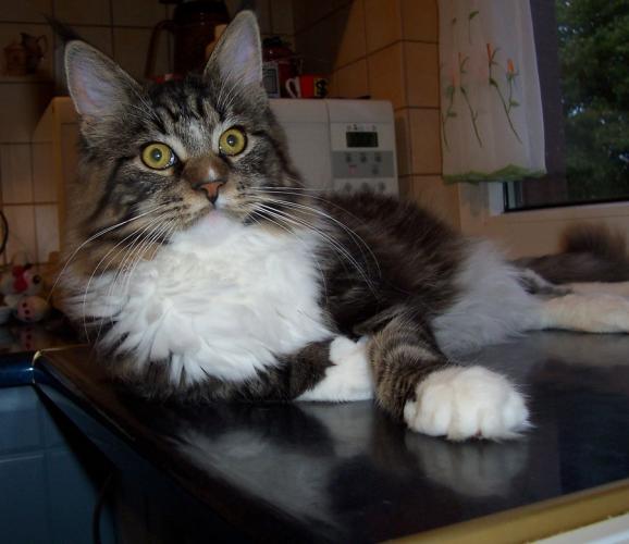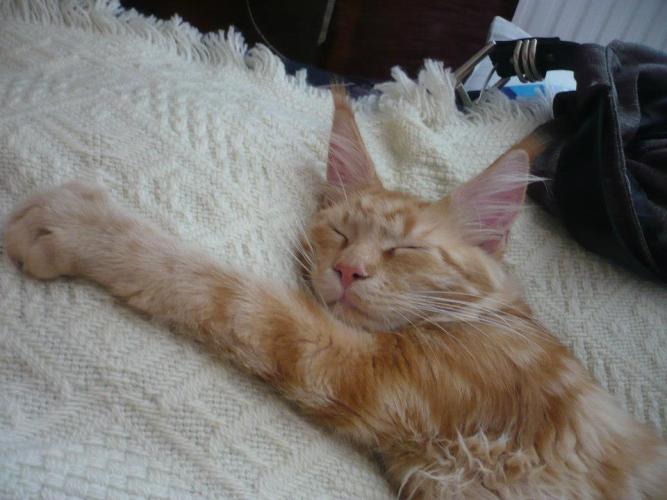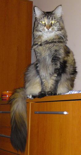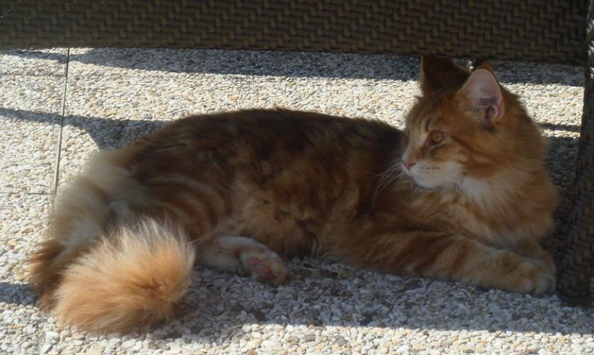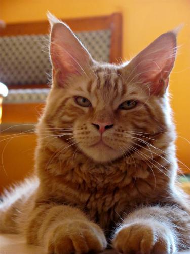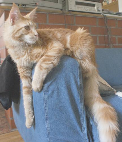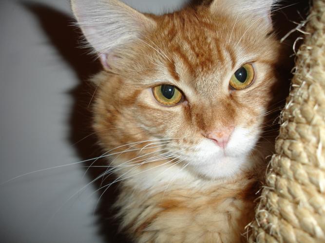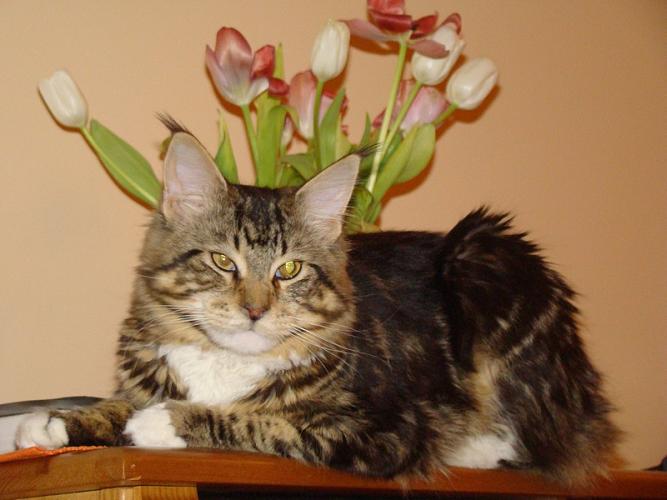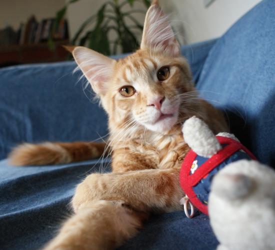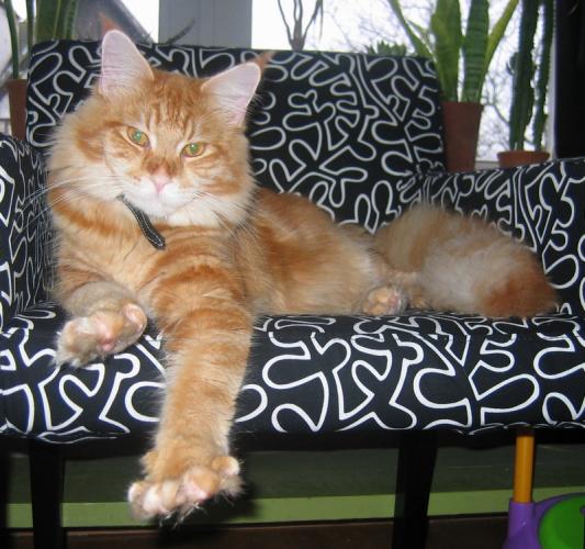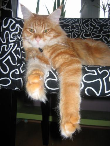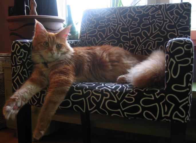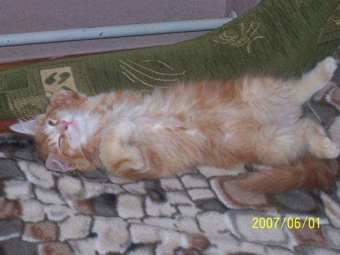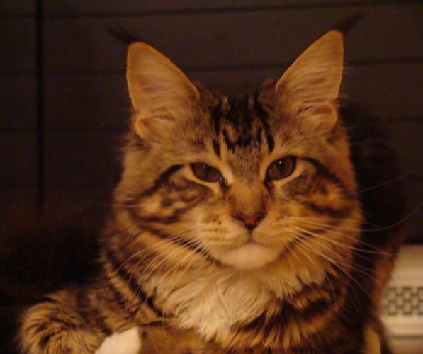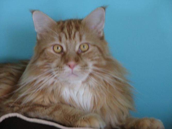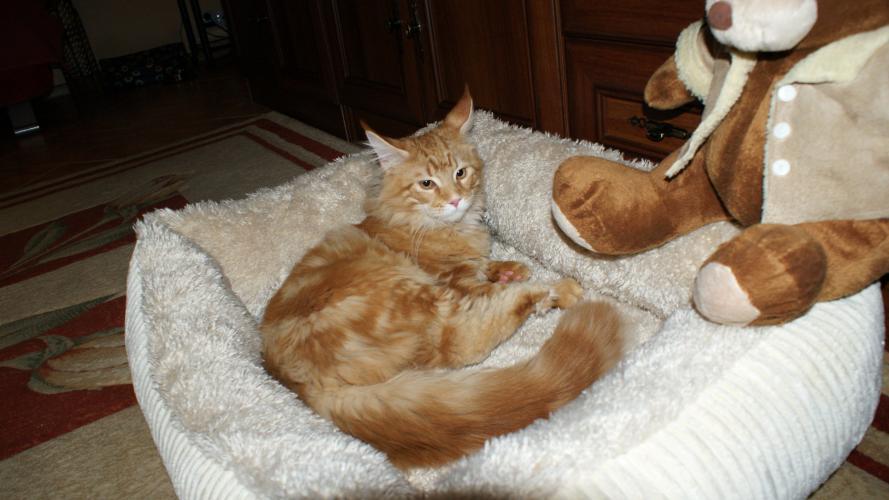 Mieszka w Starogardzie Gdańskim i spełnił marzenie Hani o rudym Maine Coonie, chociaż po domu przechadzają się piękne i utytułowane koty rasy syberyjskiej. Ponieważ posiada niepowtarzalny wdzięk i temperament, ożywił całe psio-kocie towarzystwo :))