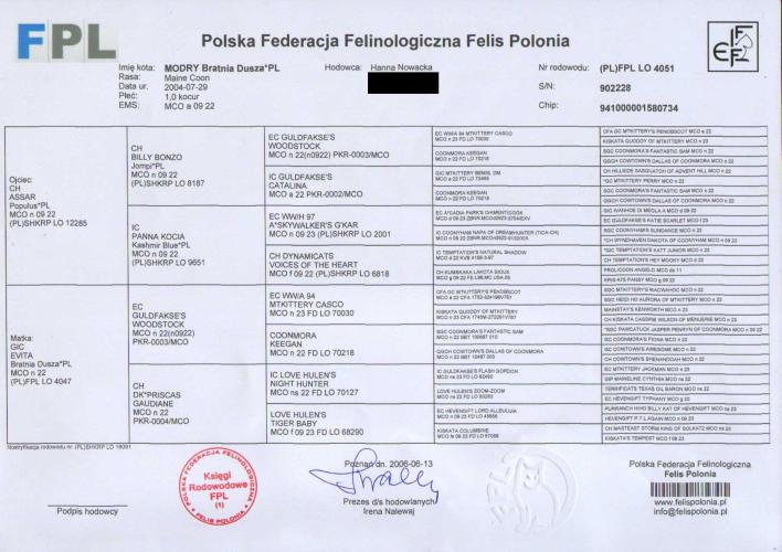 "Modry – syn Evity i Assara Populus * PL, wnuk Zuzi – w swoim rodowodzie posiada pierwsze koty tej rasy sprowadzone do Polski co dla mnie, jako hodowcy jest niezwykle cenne no i poza tym – niebieski klasyk...