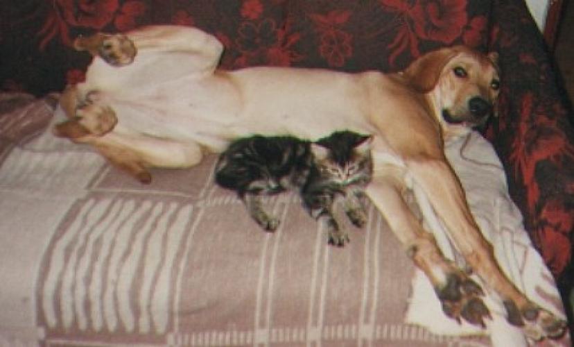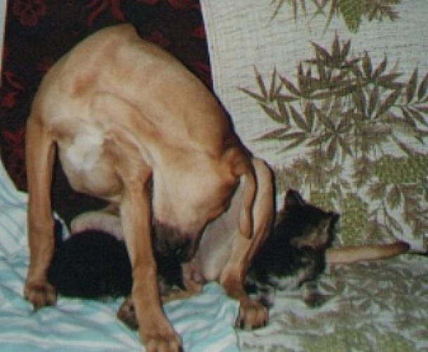 Młode koty nic sobie z niej nie robią, chociaż dla takiego kociego malucha Rhodesian to niezłe wyzwanie..." – to już niestety przeszłość.......