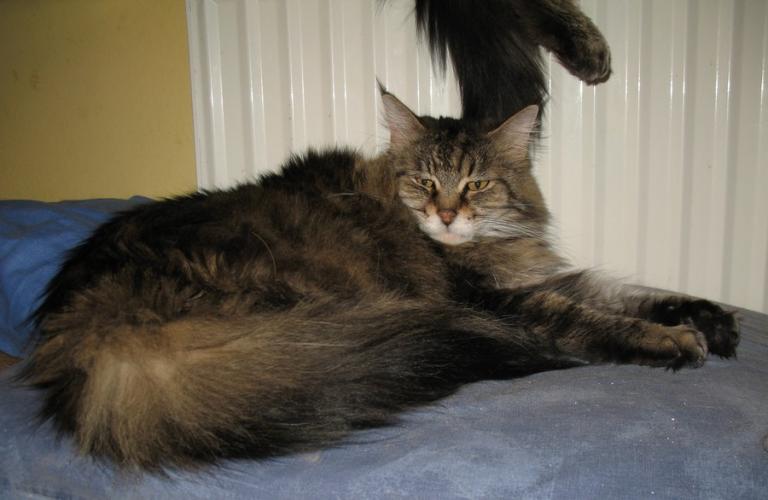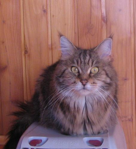 Kot to delikatny i wrażliwy, niewystawiany więcej z powodu tejże wrażliwości, na wystawach zestresowany... przeraża go hałas i szum wystaw, te wszystkie palce wtykane w klatkę... ale poza tym to kot łagodny, delikatny w stosunku do kotek i kociąt... ceni sobie spokój i ciszę.