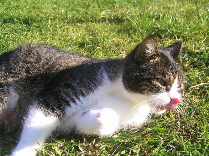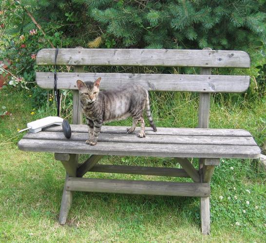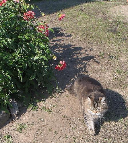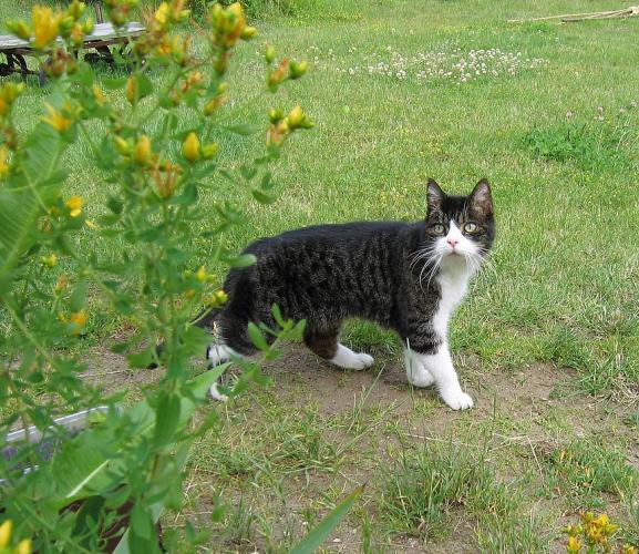 Tak samo jak pozostałe moje kocury – nie znaczy terenu, uwielbia wychodzić do ogrodu i gania wtedy z zapałem wszelkiego rodzaju muchy, pająki i "klaszcze" w motyle, na całe szczęście nie trafiając :))))