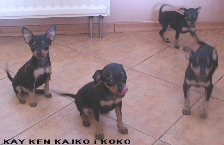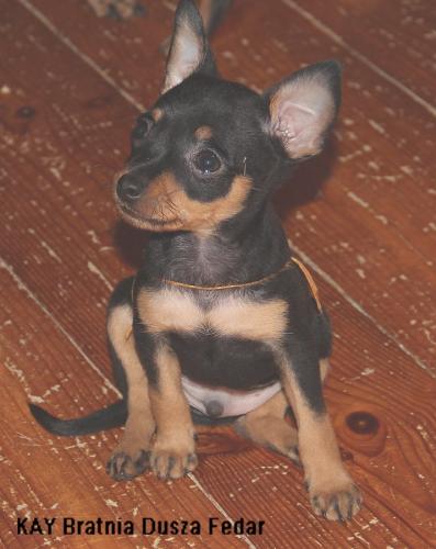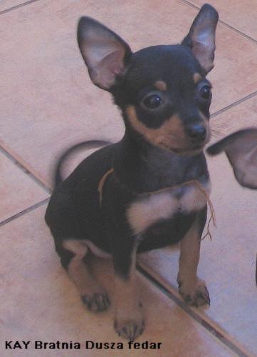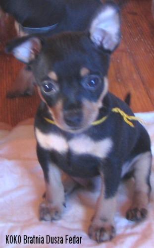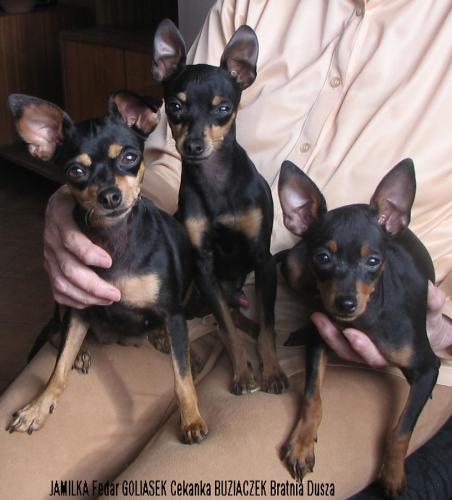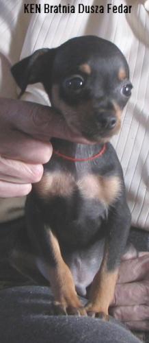 Aktualnie nie mamy i nie spodziewamy się szczeniąt. | W związku z bardzo licznymi zapytaniami o szczenięta - Krysariki, uprzejmie informuję, że szukam dla moich wyjątkowych szczeniąt :), naprawdę wyjątkowych nowych opiekunów, | a rezerwacja szczeniaczka wiąże się z wpłaceniem zadatku.Zadatek nie będzie zwracany, jeżeli rezygnacja z zakupu nastąpi z winy zamawiającego. | Archiwum miotów. | O.GOLIASEK Cekanka * CZ & JAMILA LUKY LOU Fedar * CZ - data urodzenia 03.02.2015 r. | Urodziły się 2.szczeniaczki płci męskiej. | DYZIO Bratnia Dusza - Czeski Pinczer - w nowym domu. | O.GOLIASEK Cekanka * CZ & JAMILA LUKY LOU Fedar * CZ - data urodzenia 26.04.2013 r. | QUMA Bratnia Dusza - w nowym domu. | -------------------------------------------------------------------------------------------------------------------------------------------------------------------------------------------------------- | BUZIACZEK Bratnia Dusza - piesek - czarny z podpalaniem - waga urodzeniowa - 140 g - sprzedany- ma nowy, wspaniały dom, mieszka w Świnoujściu. | AMI Bratnia Dusza - w nowym domu. | ALI Bratnia Dusza - mieszka w Norwegii. | EDI Bratnia Dusza - mieszka w Tarchominie, ma wspaniały dom oraz towarzystwo świnki morskiej:) | KEN Bratnia Dusza Fedar - piesek czarny z podpalaniem - waga urodzeniowa - 85 g - w nowym domu:) | KAY Bratnia Dusza Fedar - piesek czarny z podpalaniem - waga urodzeniowa - 110g - w nowym domu:) | KAJKO Bratnia Dusza Fedar - piesek czarny z podpalaniem - waga urodzeniowa 120 g - już w domu z Gintare ( Litwa ) | KAJKO Bratnia Dusza Fedar w nowym domu. | KOKO Bratnia Dusza Fedar - piesek czarny z podpalaniem, waga urodzeniowa 145 g - już z Radkiem:)